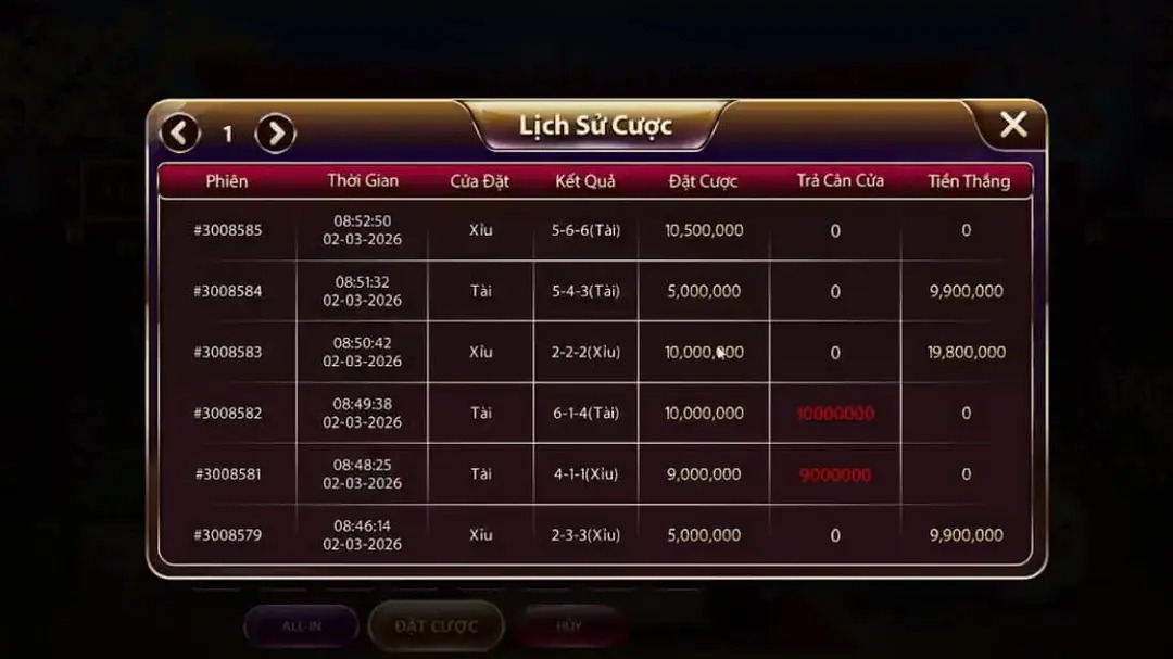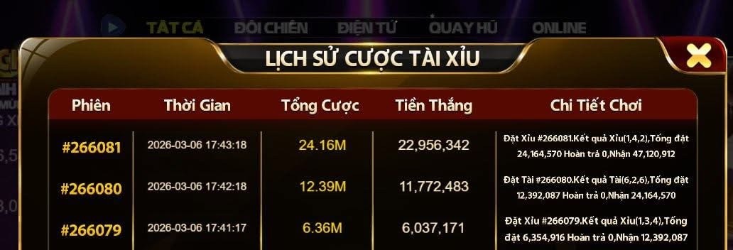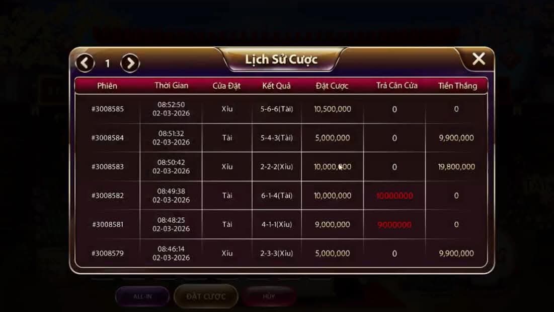 Để bắt cầu tài xỉu Sunwin thắng lớn, anh em hãy tận dụng bảng thống kê lịch sử cầu và ứng dụng các kỹ thuật soi cầu như Cầu bệt, Cầu đảo 1-1, Cầu 1-2-3 hay 3-2-1,.. một cách linh hoạt nhất.