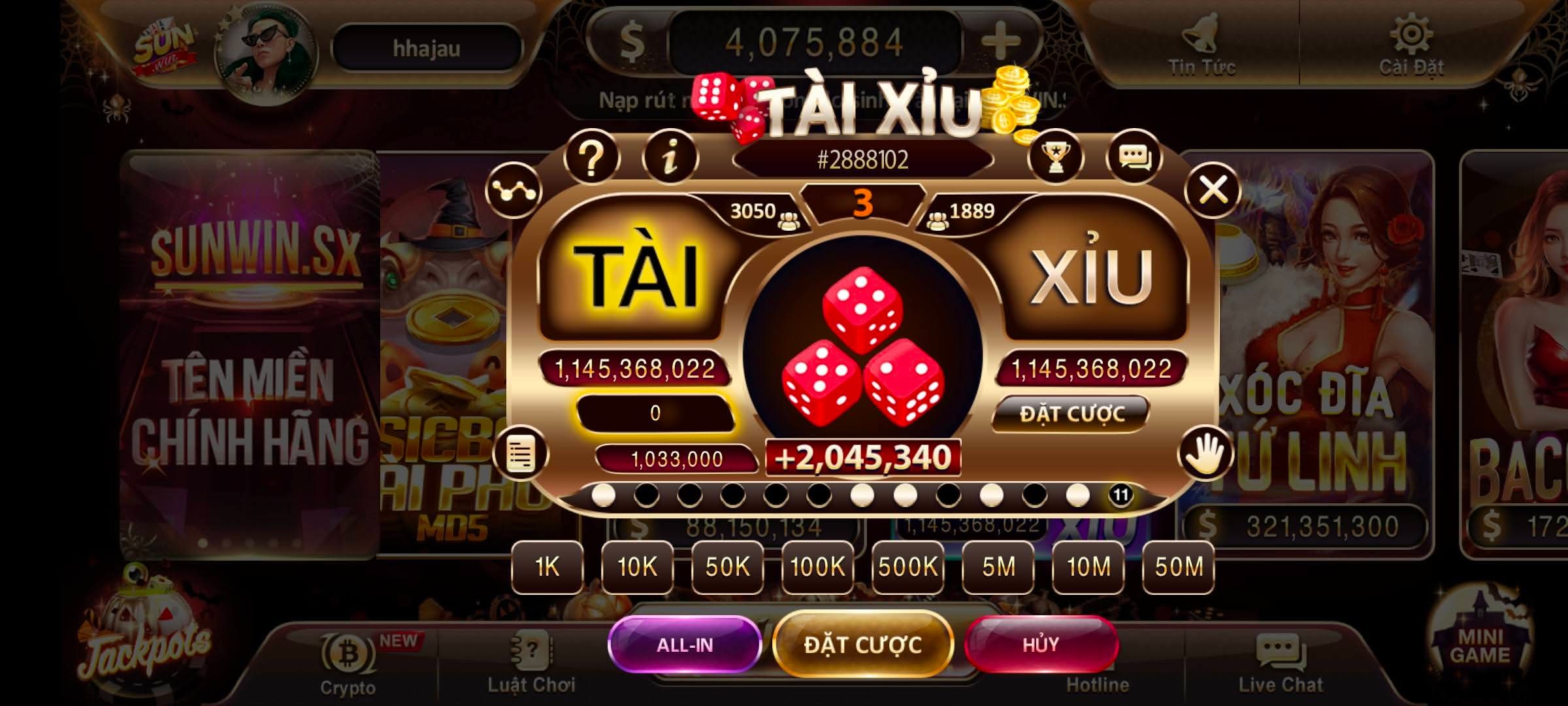 Đến với sảnh tài xỉu Sunwin, các bet thủ sẽ phải trầm trồ về sự đẳng cấp của giao diện, sự sống động của âm thanh và sự nhộn nhịp của đông đảo anh em tham gia. Anh em có thể thoải mái lựa chọn Tài xỉu MD5 với đồ hoạ 3D đẹp mắt, hoặc Tài xỉu Livestream với các bé Dealer xinh đẹp và vui tính. Thêm vào đó là tính năng thống kê lịch sử cầu, giúp các bet thủ có kinh nghiệm có thể soi cầu và đưa ra lựa chọn chính xác nhất.