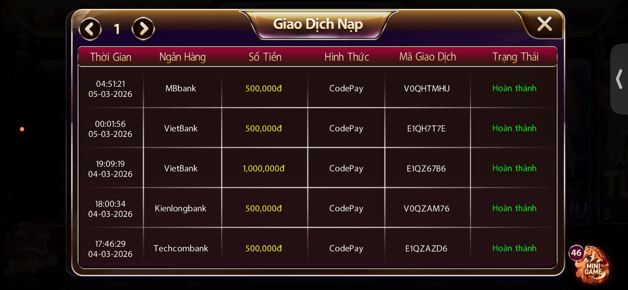 code 50k nạp 50k chơi lên 100k rút , hơi ít nhưng lời